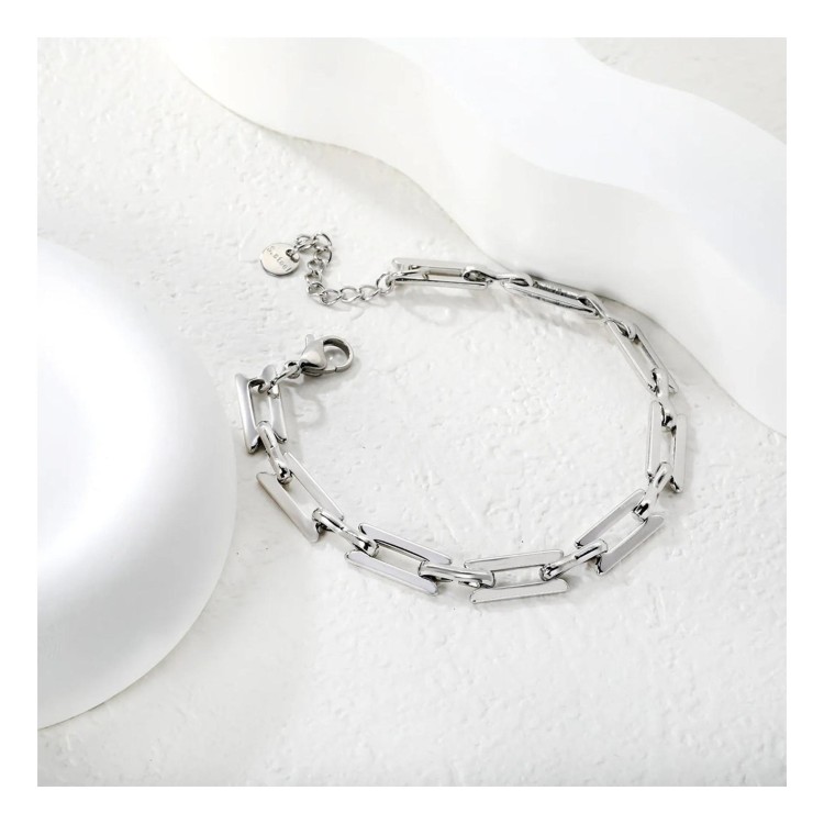 Bracciale a catena largo 6,4 mm e spesso 1,3 mm. Con una coda rotonda di 18 + 3 cm + 6 mm, questo bracciale è versatile ed elegante. Disponibile in acciaio, è l'accessorio perfetto per ogni occasione.
