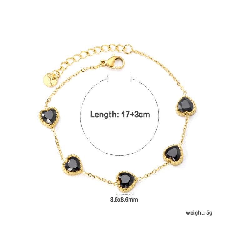 GC Jewels Bracciale Oro con 5 Ciondoli a Cuore Nero
