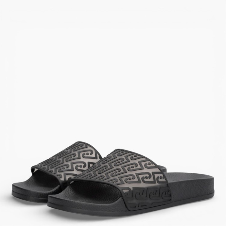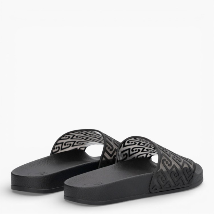 Ciabatte con tomaia in gomma con fascia frontale stampa monogram. Suola platform.