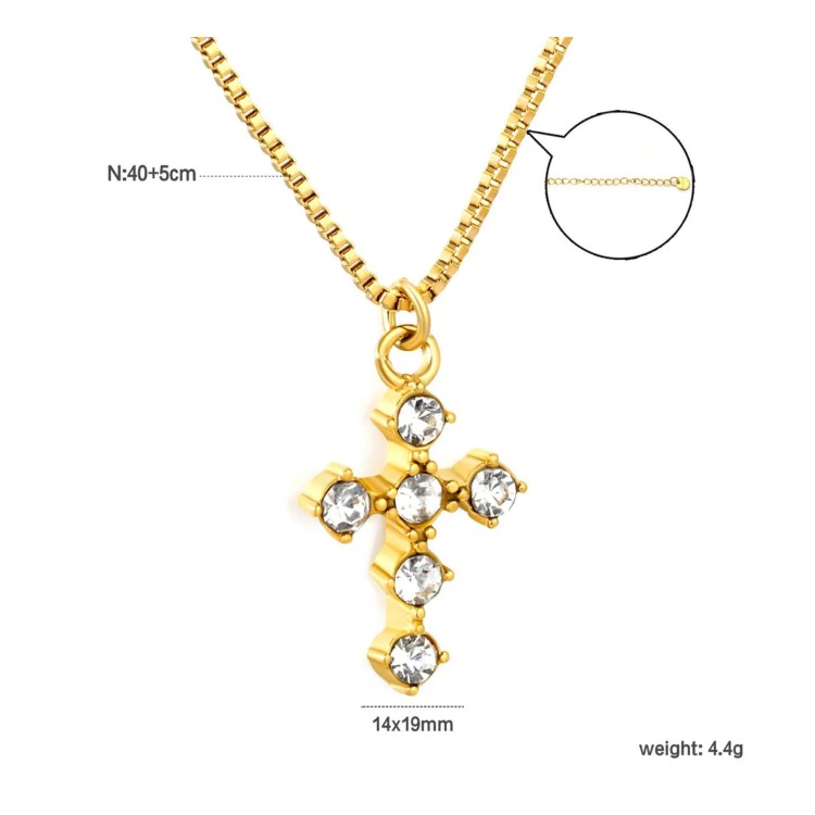 Eleva la tua eleganza quotidiana con questa raffinata collana con pendente a croce. Realizzata in oro lucido, la croce da 14x19 mm presenta scintillanti dettagli che catturano la luce magnificamente. La delicata catena a maglie veneziane da 1,2 mm offre resistenza senza ingombro, mentre la lunghezza regolabile di 40+5 cm con terminale rotondo da 6 mm garantisce una vestibilità personalizzata per qualsiasi scollatura. Un gioiello senza tempo che si adatta perfettamente sia al giorno che alla sera, combinando simbolismo classico con raffinatezza contemporanea.
