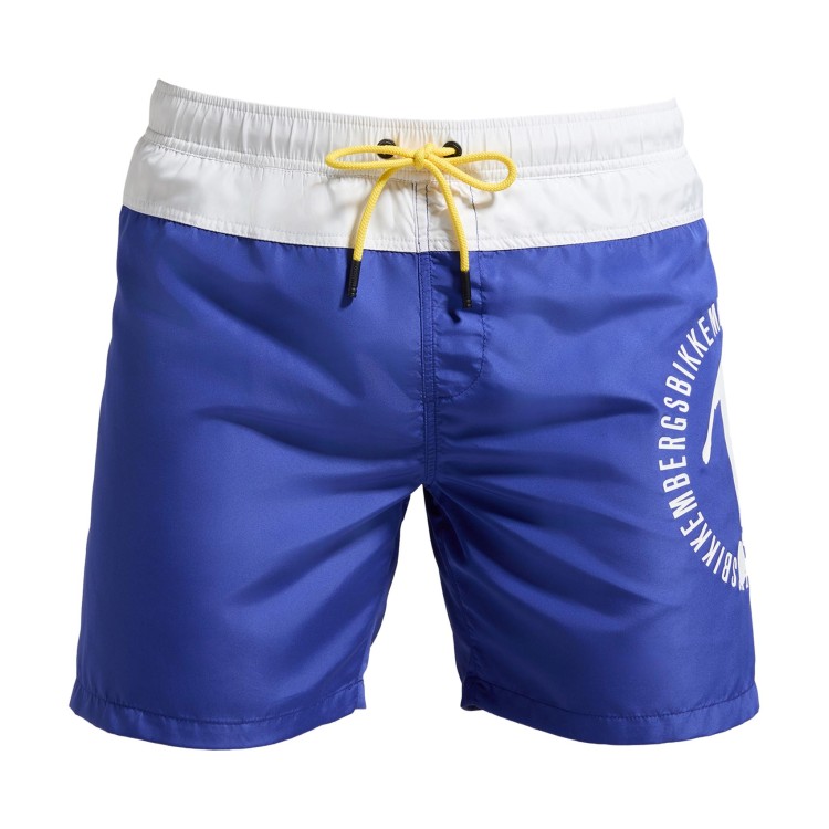 Tessuto in tinta unita con stampa a contrasto per questi boxer mare da uomo Bikkembergs dotato di occhielli traspiranti e coulisse in vita. Questo costume da bagno può essere ripiegato nel taschino posteriore. Realizzato in poliestere.