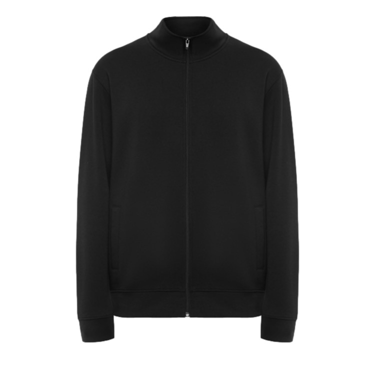Felpa unisex con cerniera frontale e collo alto. Zip abbinata. Due tasche laterali con bordo in tessuto coordinato. Polsini e cintura a coste 2x1 con elastan. Cuciture nastrate in tessuto coordinato.