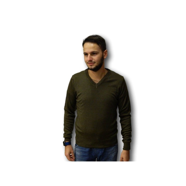 Ne Pas 11201F Pullover Uomo con Scollo a V Prodotto Italiano Verde Militare