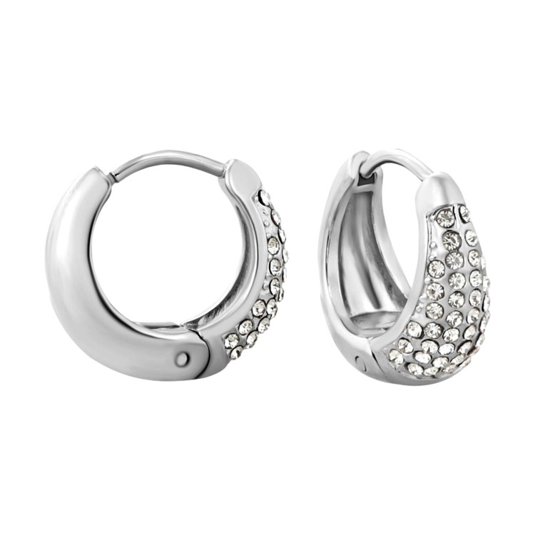 Questi orecchini da 15,6x15 mm presentano ganci in argento, abbinati a strass bianchi lucenti.