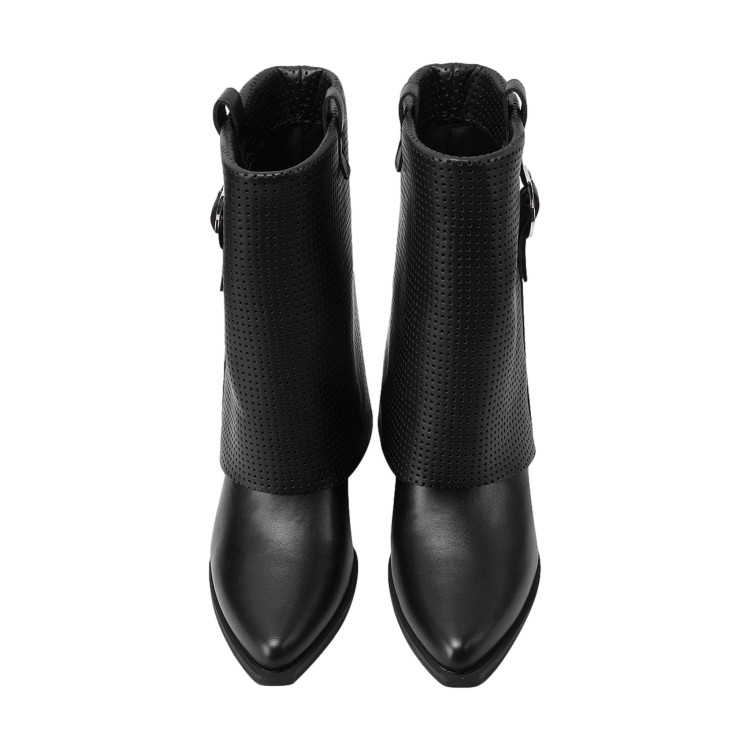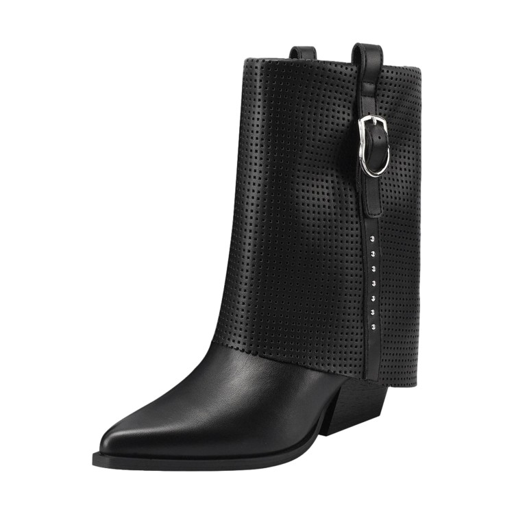 QUEEN HELENA X34 63 Stivaletti Biker Texani Traforati Donna Tacco Basso Con Fibbia Nero